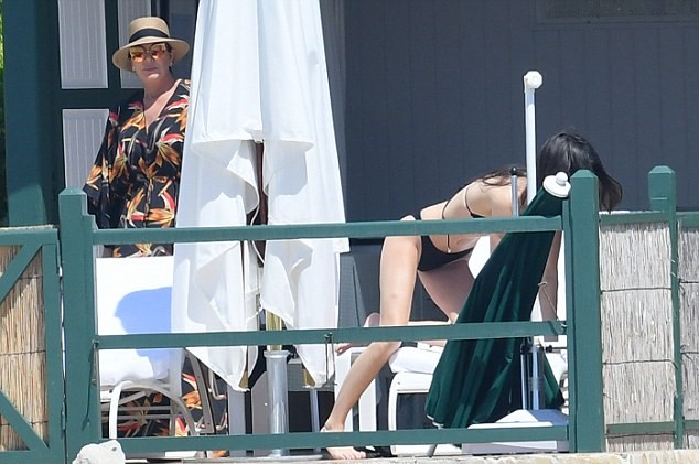 But Kendall Jenner allowed herself some time to take it easy as she nibbled on some watermelon whilst donning a skimpy black bikini at the Hotel Eden Roc on Saturday.